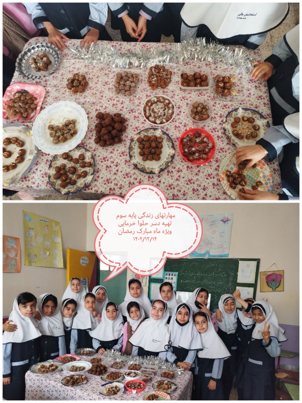 مهارتهای زندگی پایه سوم تهیه دسر حلوا استقبال از ماه مبارک رمضان تمرین مهارت همدلی و مهربانی ۱۴۰۲/۱۲/۱۴